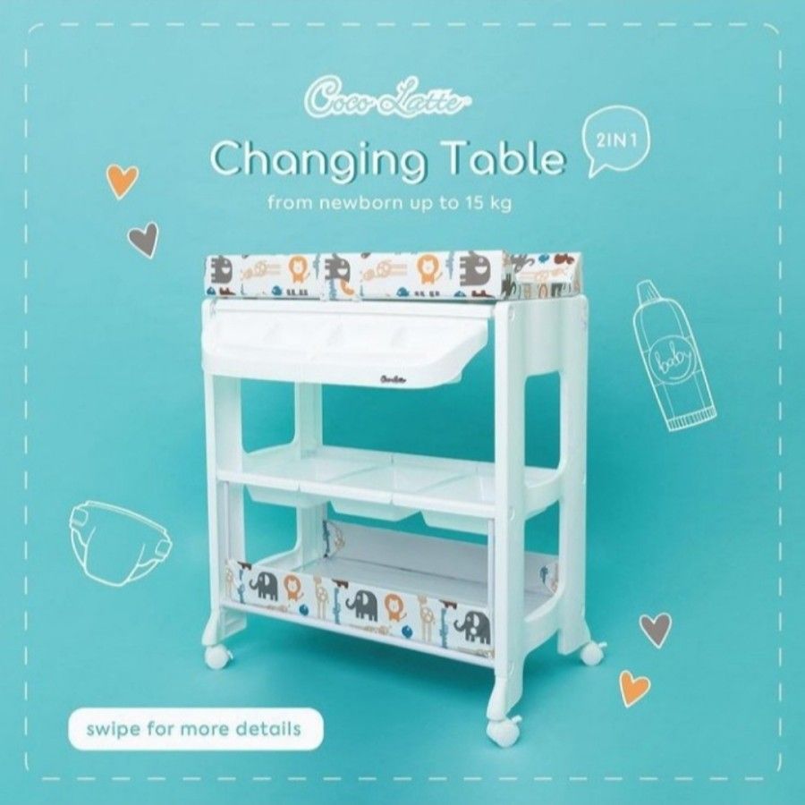 Changing Table dapat digunakan 2 in 1, selain sebagai tempat untuk memandikan anak, bisa juga digunakan sebagai tempat untuk memijat anak atau mengganti popok dan baju.