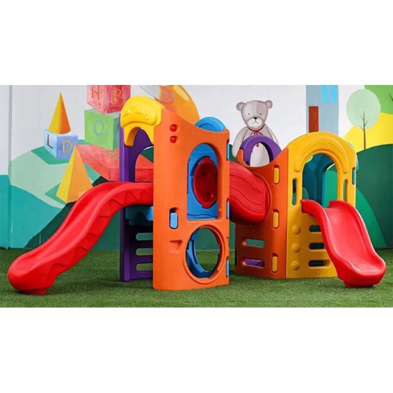Playground yng menyenangkan untuk anak dengan 2 perosotan dan terowongan